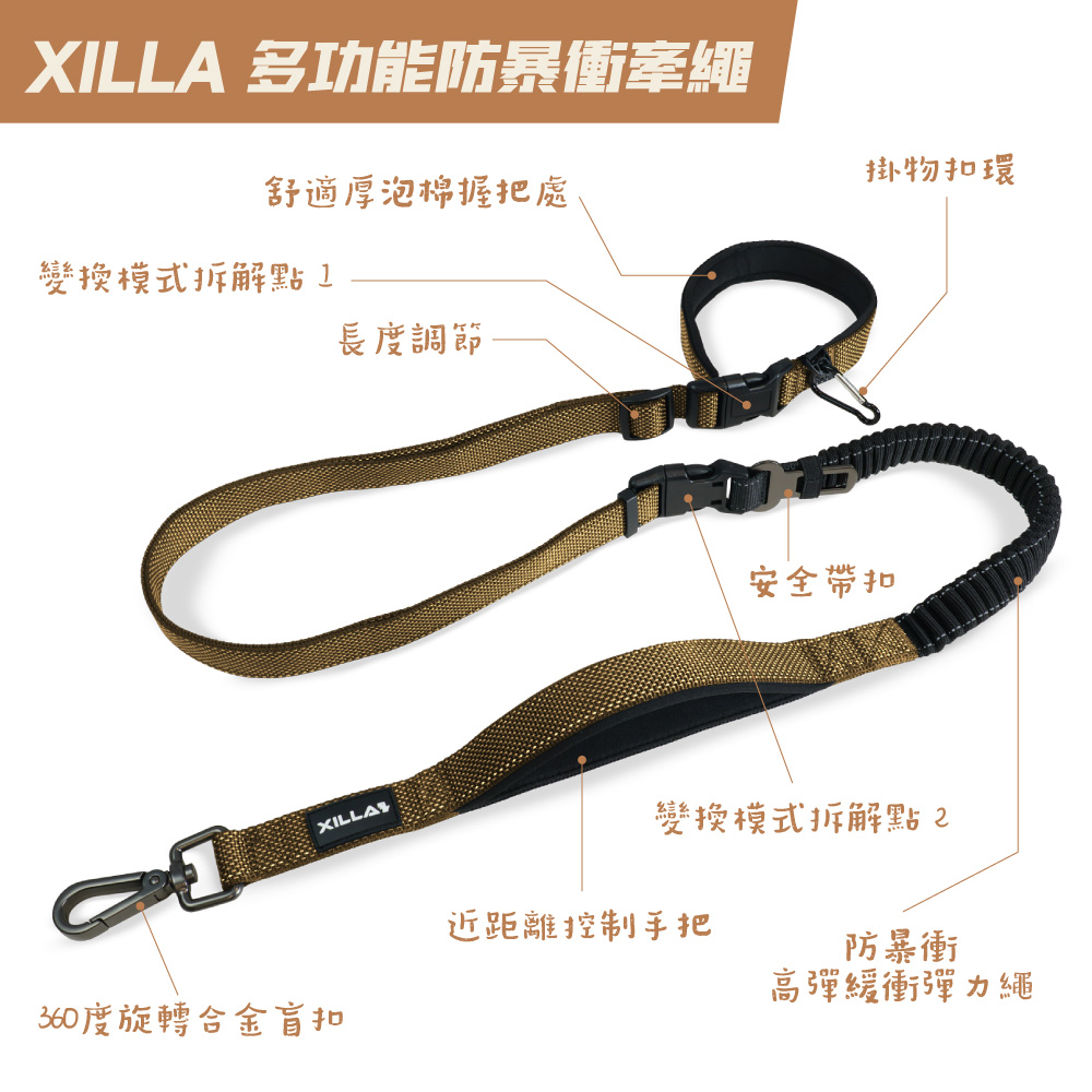 XILLA 六合一防暴衝牽繩,專為強烈拉扯的狗狗設計,結合減震緩衝、360°防纏繞扣環、耐用尼龍織帶、舒適防滑手柄、高亮度反光條、多用途設計六大功能,讓遛狗更輕鬆、更安全!減震彈力繩能有效吸收暴衝衝擊,減少手腕與肩膀壓力,高強度材質確保耐用不易斷裂,適合中大型犬或活力旺盛的狗狗。夜間反光設計提升可視度,無論日常散步、訓練還是戶外活動,都能確保愛犬安全。防暴衝牽繩推薦,就選 XILLA,讓每次遛狗都更安心!