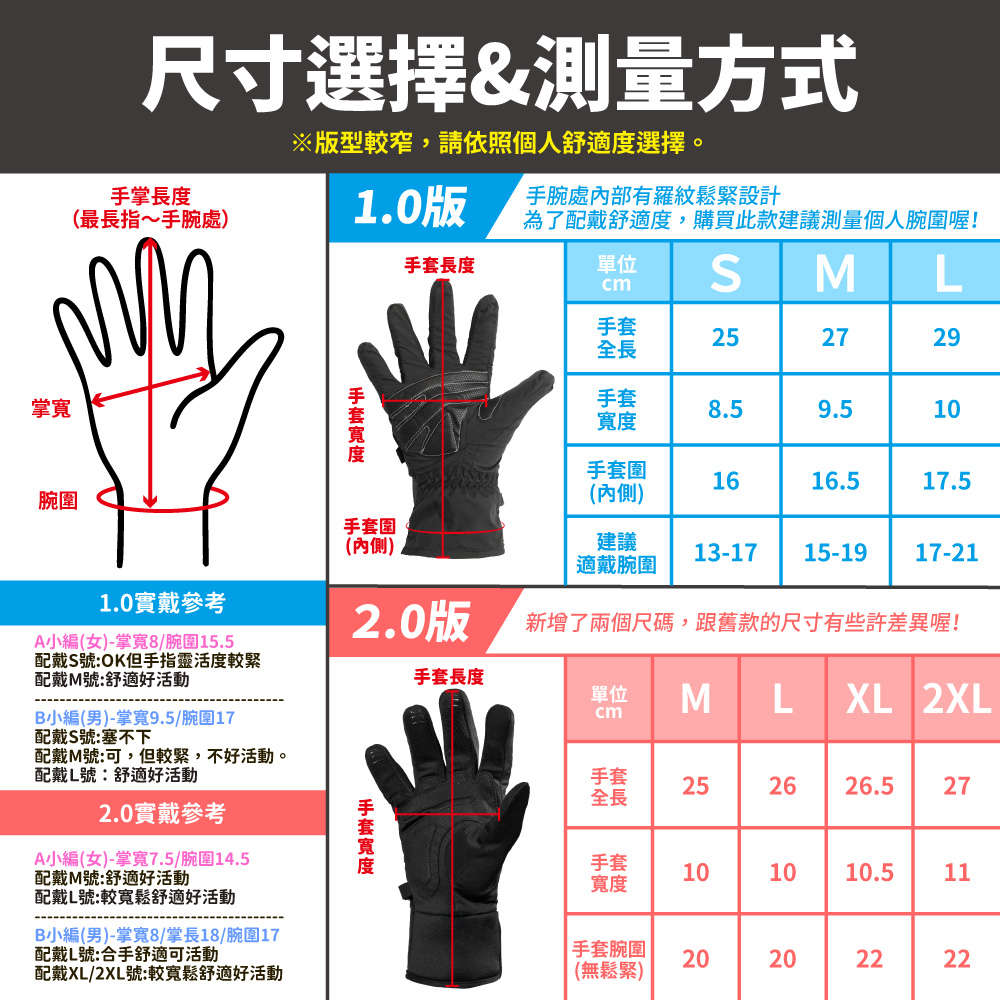 ⚠️ 此款手套版型偏小,建議依個人手掌尺寸選購。