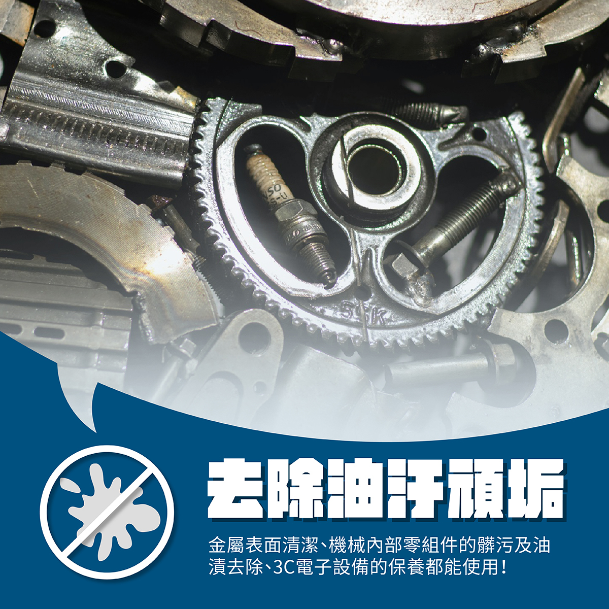 可直接噴灑於金屬表面,再反覆擦拭油污垢處直到乾淨。