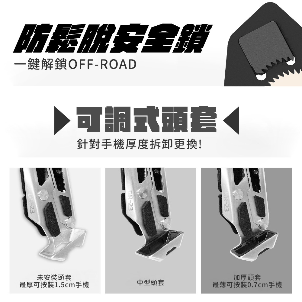 為了適應各式各樣的手機,銀刃提供兩種規格的頭套供替換,並設計了可拆換結構。