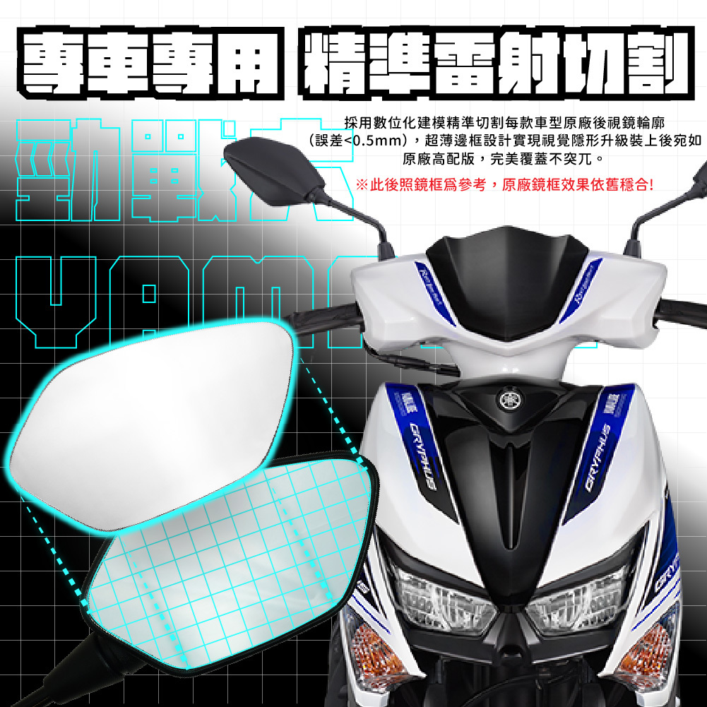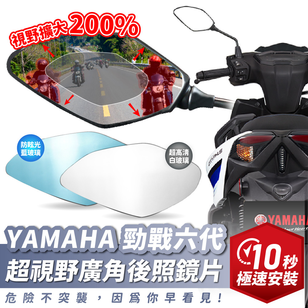 YAMAHA 勁戰六代專用超視野廣角後照鏡,採用高品質鏡面材質,提供更大視野範圍,提升騎乘安全性。耐用設計兼具美觀,完美匹配勁戰六代外觀,讓你行車更安心無憂。