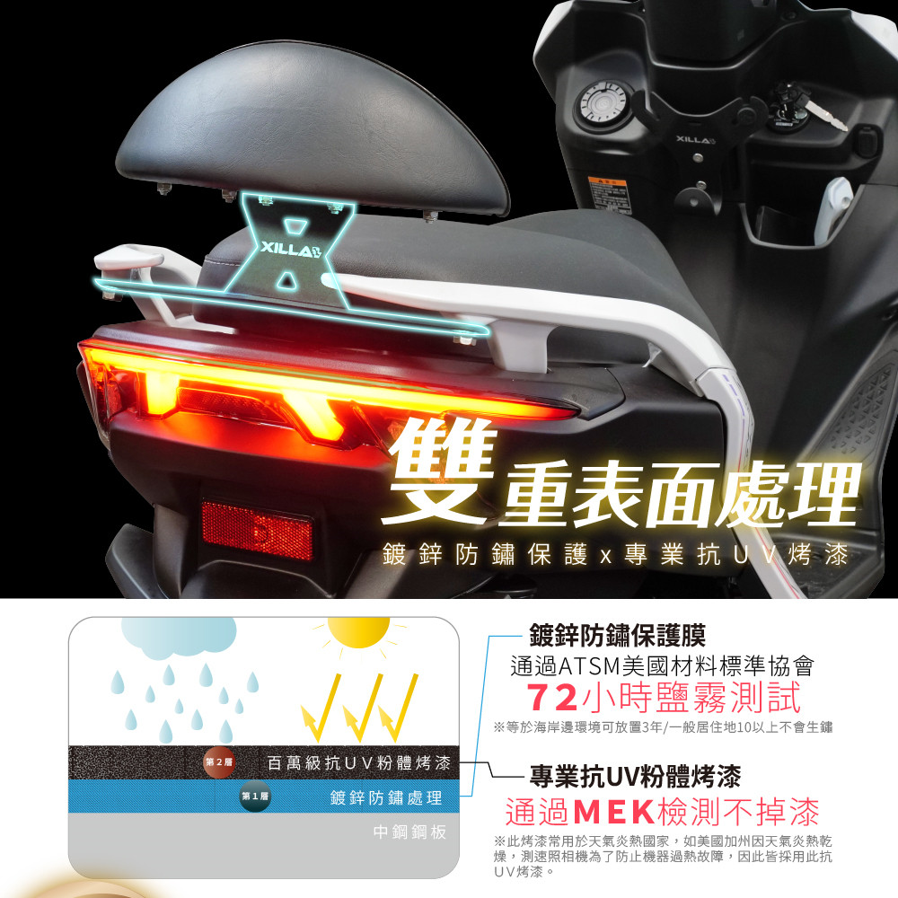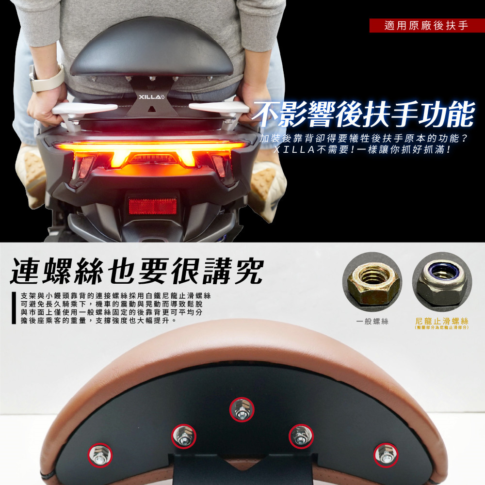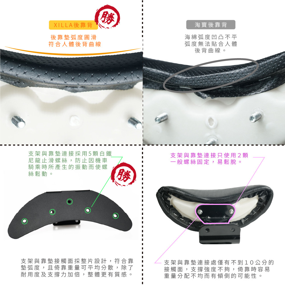 MIT台灣製造,優質小饅頭泡棉、耐用鋼板與雙層防鏽處理,使用壽命長達10年以上。完美密合原廠後扶手與坐墊,支撐力加倍,安裝簡便,給後座滿滿安全感。支架、靠墊精密設計,穩固耐用,讓您的騎乘更舒適安心!