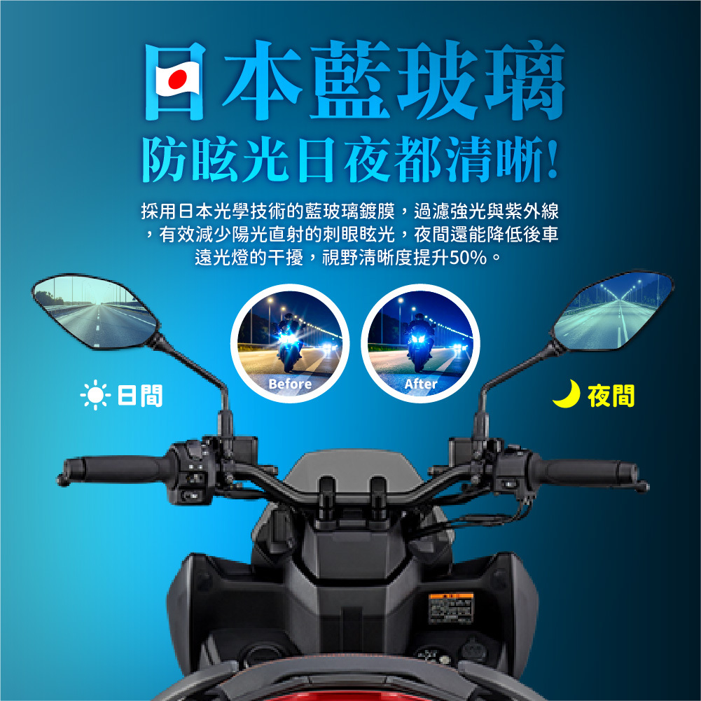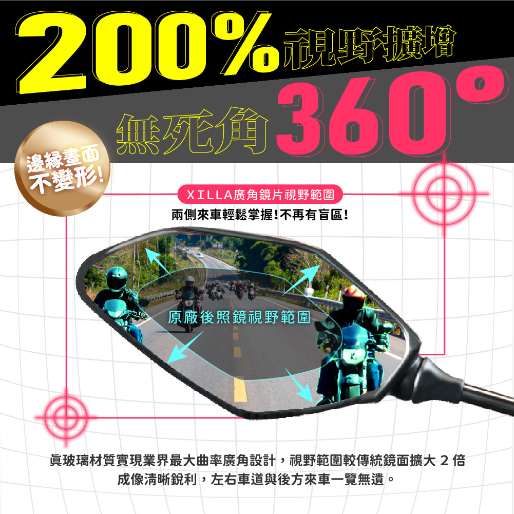 ●鏡片主要以凸面廣角來增大視野範圍,同時也會使鏡中的物體看起來比原本的更小,安裝後可能需重新適應後方來車的距離,初期請小心騎乘以避免交通事故。