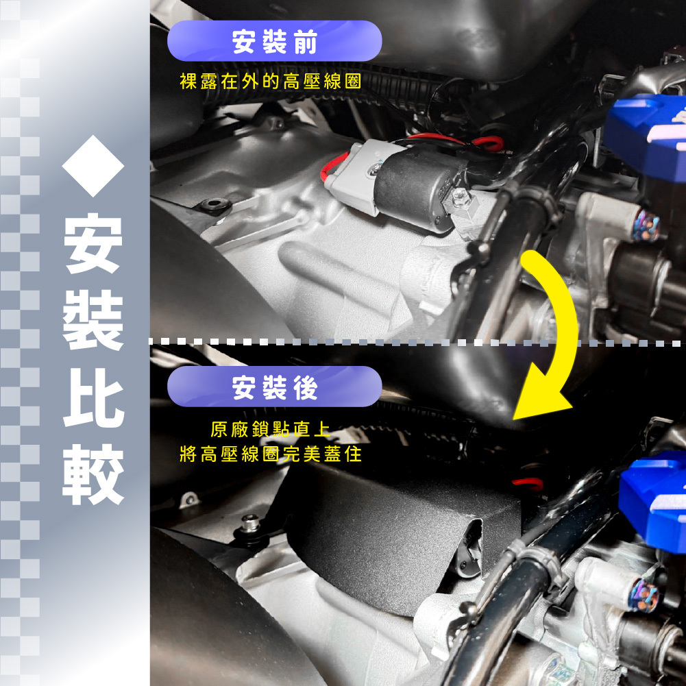 專為勁戰七代改裝打造的鋁合金/不鏽鋼高壓線圈防水蓋,能有效防止雨水、碎石和髒汙侵入點火線圈區域,提升點火系統穩定性與耐用度。精準孔位設計,可直上安裝免修改,安裝簡單。霧黑或鍍鈦表面處理,不僅提升質感,更具防鏽抗腐蝕能力。改裝車款或日常騎乘皆適用,兼具功能與美觀。