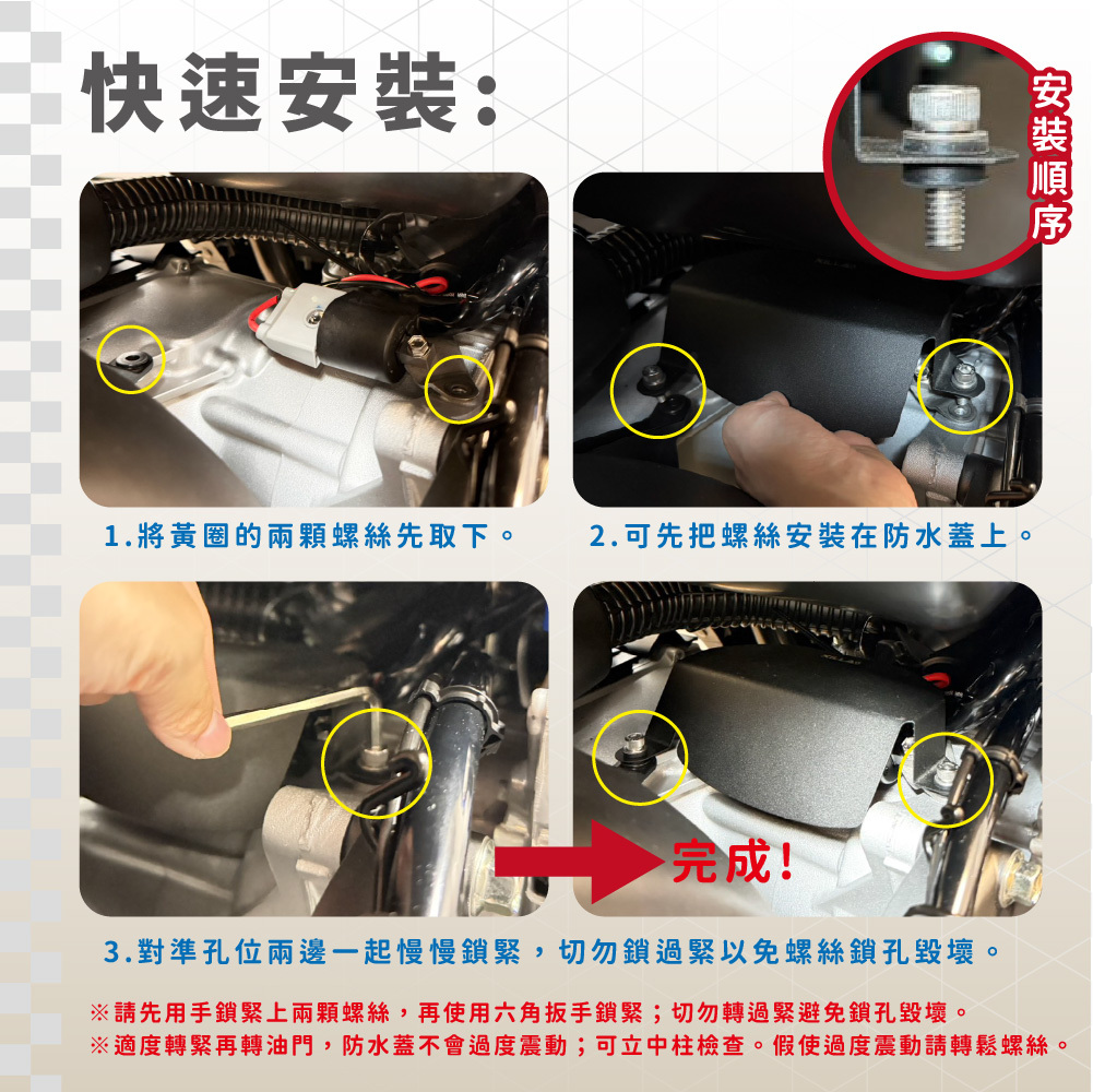 ⚠️適度轉緊催油門時防水蓋不會過度震動,可以立中柱催油門檢查,震動過度請務必轉鬆螺絲。
