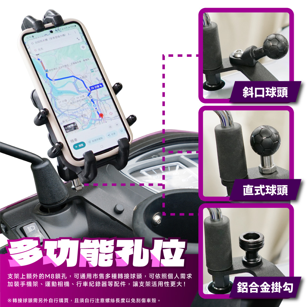 🏆多功能M8孔位,可安裝手機支架、GOPRO、鋁合金掛勾~