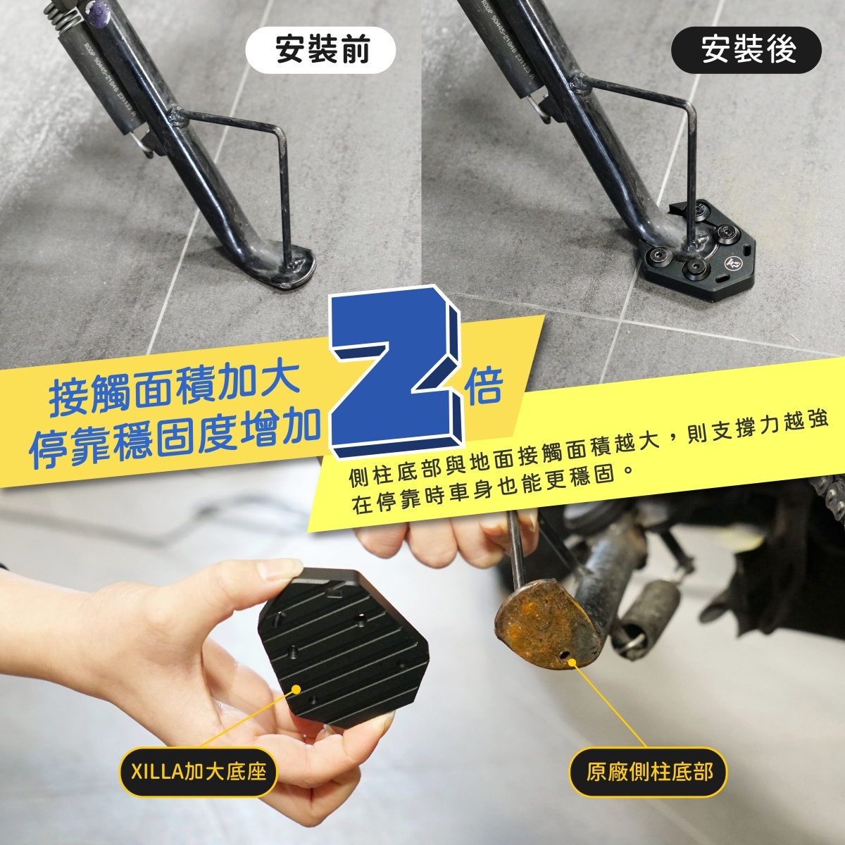 ⚠️若擔心側柱墊片上的螺絲會因長時間震動而鬆脫,或是害怕被偷走,除了定期檢查螺絲是否鬆脫,可另外加購螺絲膠喔!