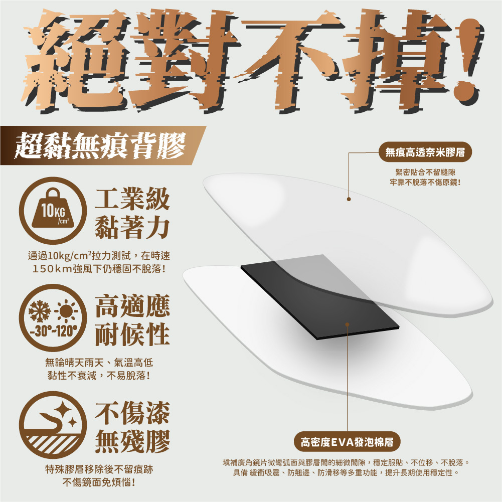 ●鏡片皆以原廠後照鏡尺寸開發,專車專用,若您有改裝後照鏡會無法安裝,購買/撕除背膠黏貼前請確認形狀是否一致。