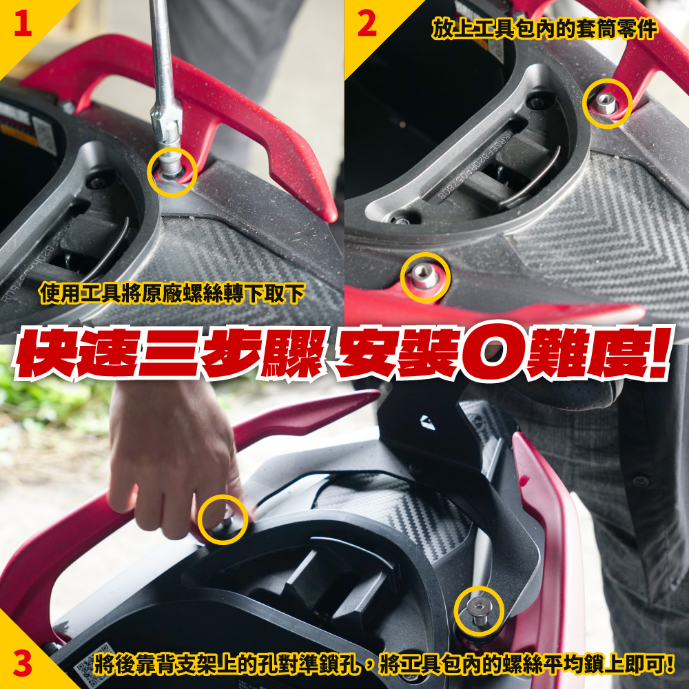 專用設計*:量身打造YAMAHA RS NEO 125後扶手與坐墊,完美密合、穩固安全。