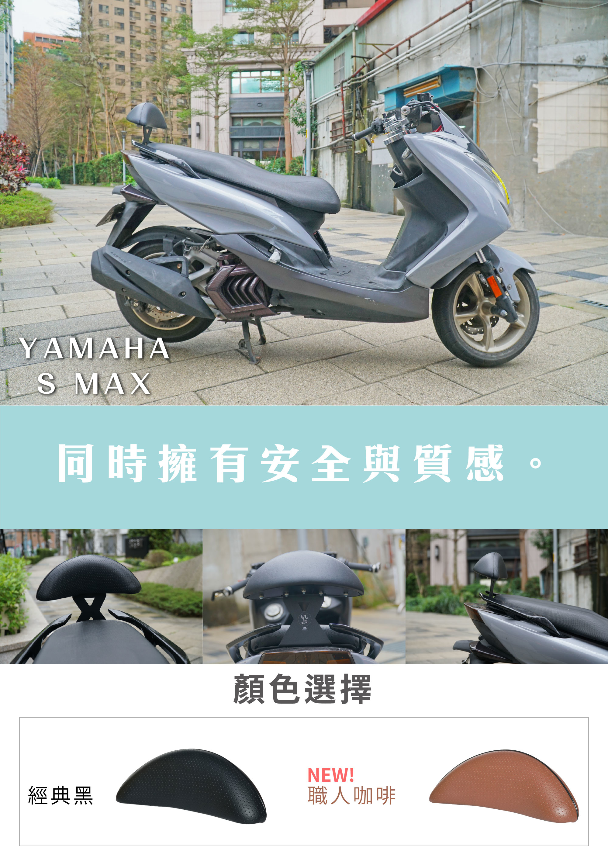 🌟此頁面為YAMAHA SMAX 155專用後靠背,可配合原廠後扶手的角度安裝,若您的後扶手有自行改裝,請先詢問小編是否能安裝再下單購買喔!