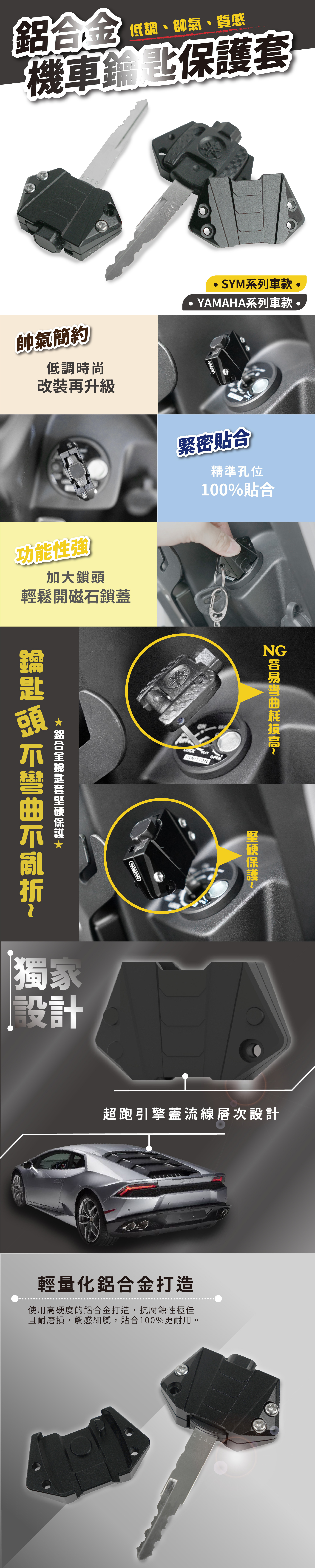 YAMAHA SYM 車款專用鋁合金鑰匙保護套是一款專為YAMAHA和SYM車主設計的高品質鑰匙保護配件。它採用鋁合金材質,具備耐用、抗刮擦及抗衝擊的特性,有效保護車鑰匙免受外界磨損或損壞。這款保護套不僅能防止鑰匙表面劃傷,還能提升整體外觀,使鑰匙更加時尚、個性化。簡單安裝且輕巧便攜,是保護車鑰匙並提升車主品味的理想選擇。