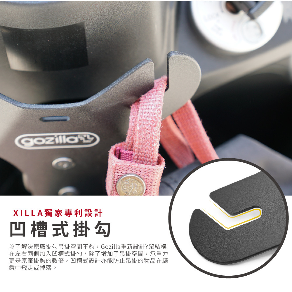 👍創新凹槽式掛勾設計,讓袋子滑入掛勾內,不怕遇坑洞袋子噴飛