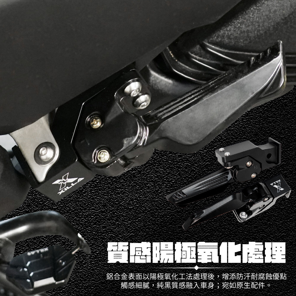 YAMANA XMAX 300 鋁合金踏板後移座+飛炫踏板是一款專為 XMAX 300 設計的高性能配件,旨在提升騎行舒適度與操控性。鋁合金踏板後移座能將踏板位置向後調整,提供更符合人體工學的騎行姿勢,減少長時間騎行時的不適感。而飛炫踏板則具有極佳的耐用性與防滑設計,讓騎士無論在乾燥或濕滑的路面上都能保持穩定的腳踏感,增強騎行安全性。這款配件不僅提升了舒適性,也讓 XMAX 300 的外觀更加運動化與個性化。