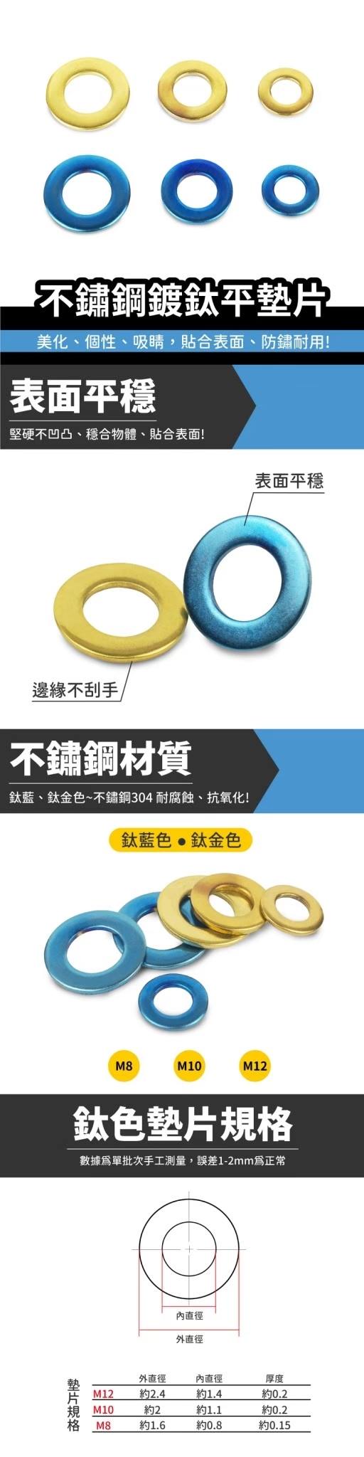 不鏽鋼鍍鈦墊片|平墊片 螺絲墊片 鍍鈦墊圈