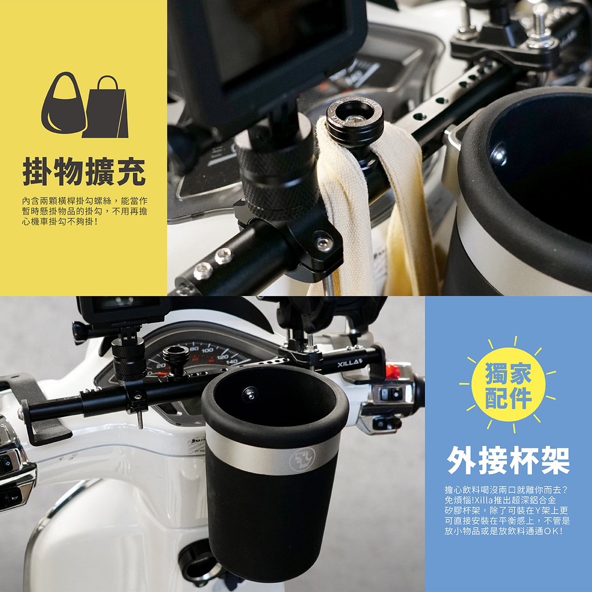 👉XILLA鋁合金手機架/PVC手機架皆可直上平衡桿安裝