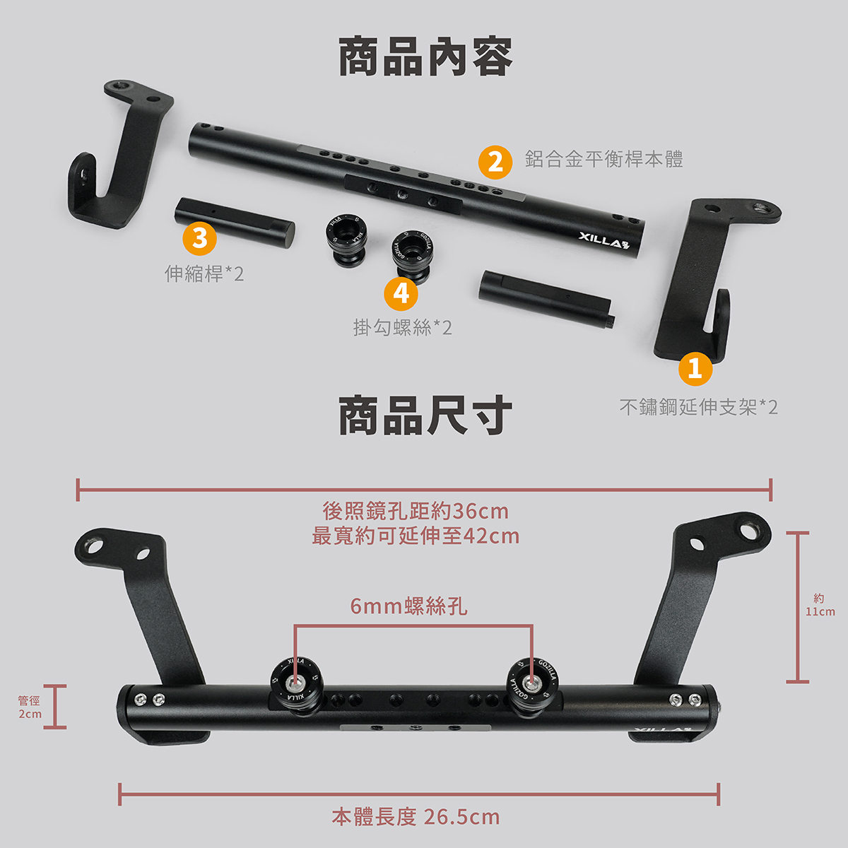 【滿配組合D款】鋁合金多功能平衡桿+不鏽鋼專用支架+鋁合金掛扣*2+鋁合金球頭擴充板+減震防盜手機支架 $ $2480