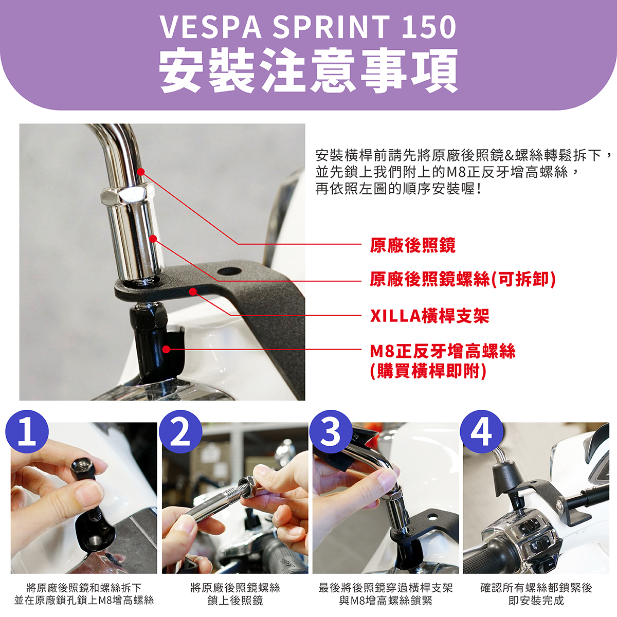 👉原廠後照鏡螺紋長度有限,建議風鏡/平衡桿擇一安裝,或自行更換較長的轉接螺絲