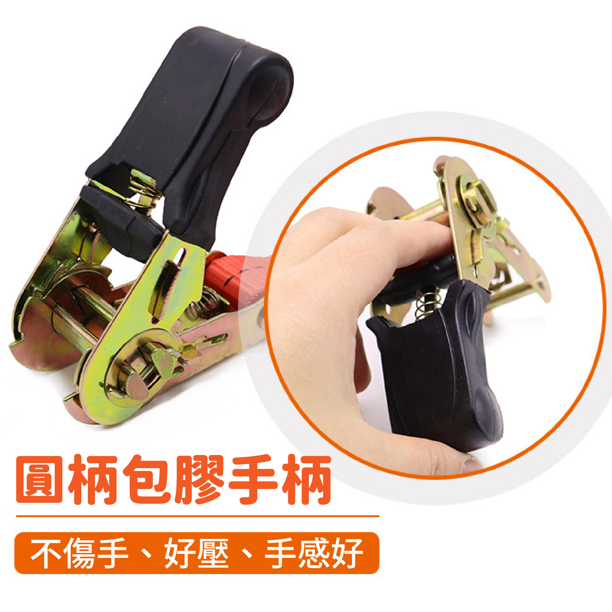 包膠手柄拉緊器綑綁帶|鐵製棘輪 穩固綑綁物品