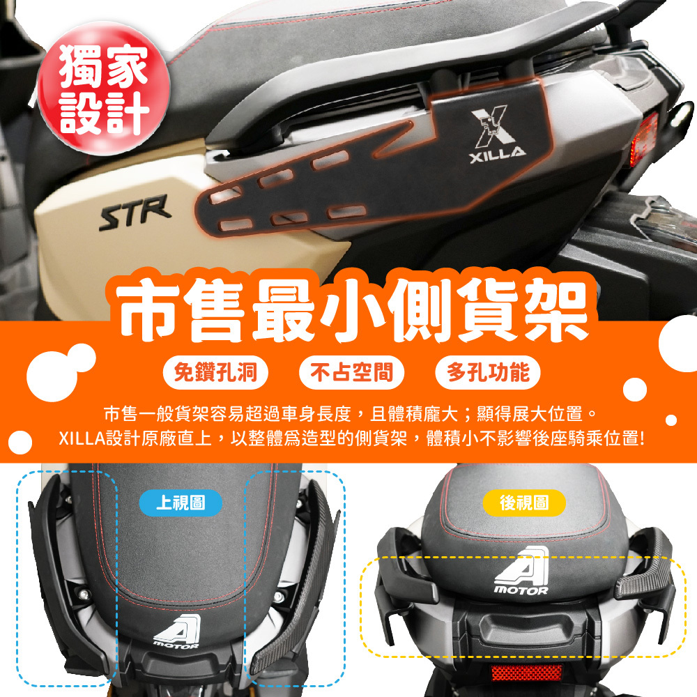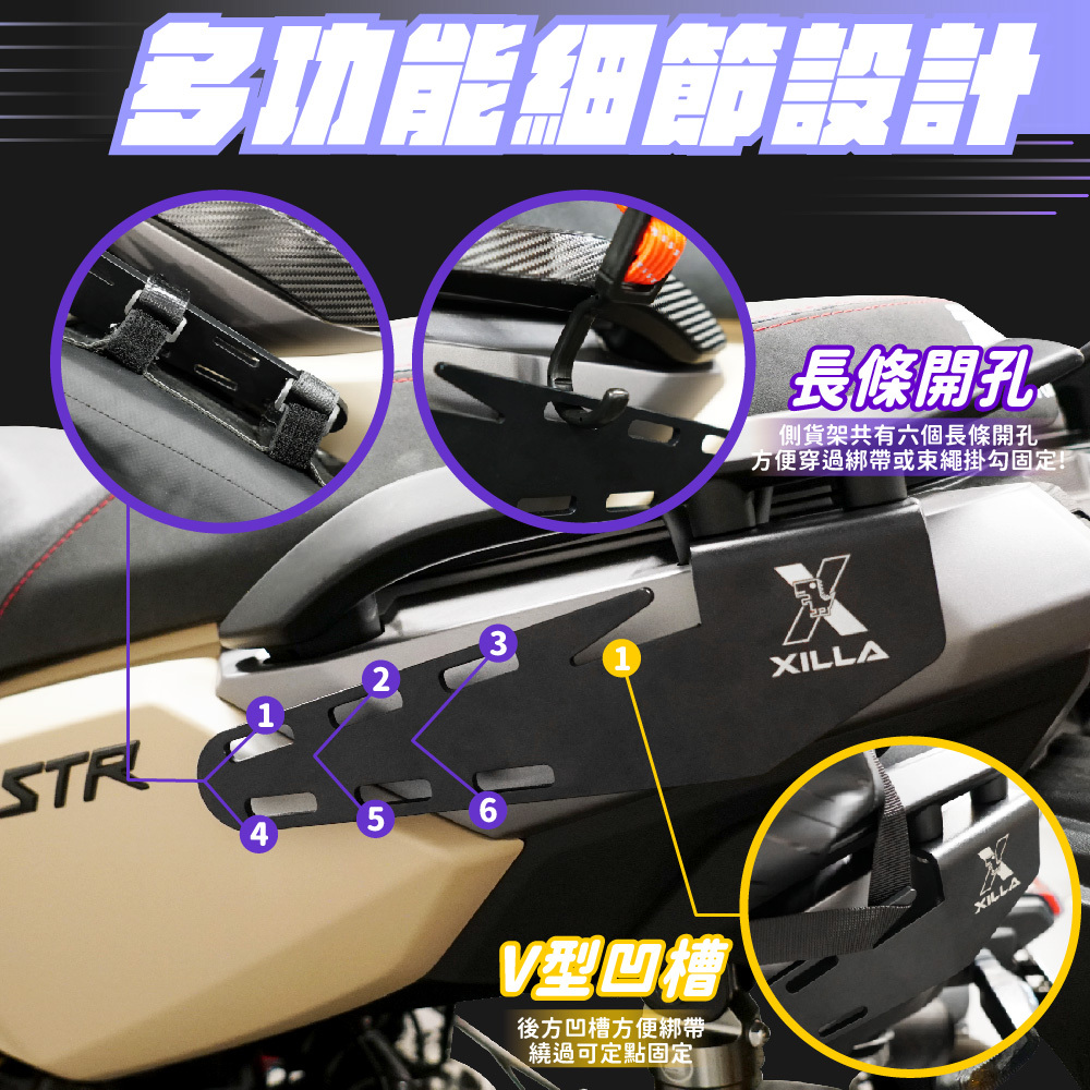 側貨架的設計不僅能提升儲物效率,還可增強機車的外觀和功能性,適合長途旅行或日常通勤使用。