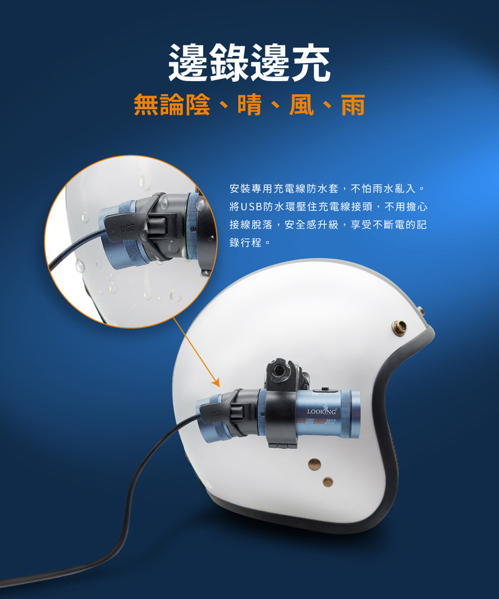 🏆 可支援邊充邊錄,安裝專用充電線防水套更安心