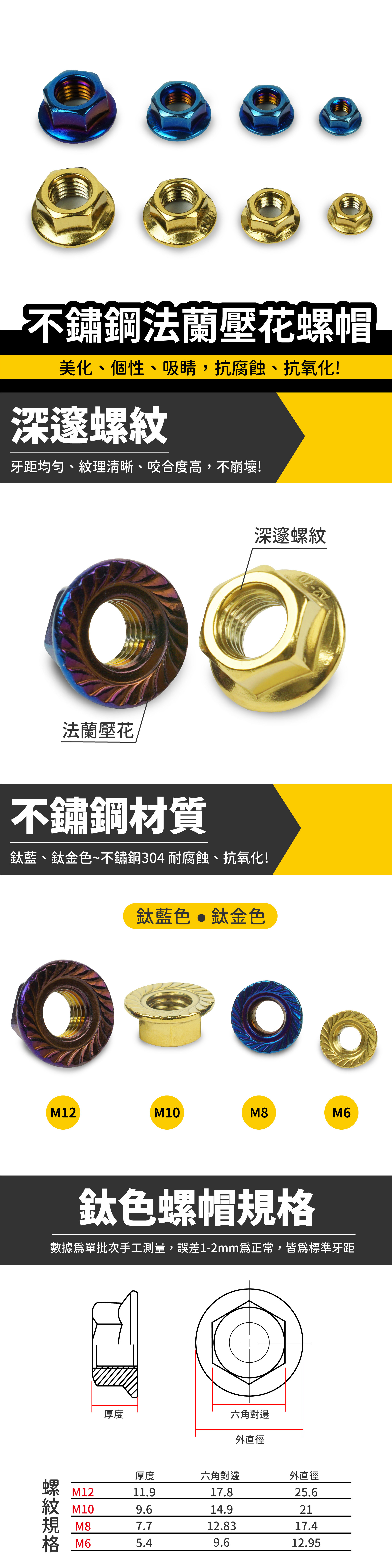 鍍鈦法蘭壓花螺帽|不鏽鋼螺母 鍍鈦螺帽